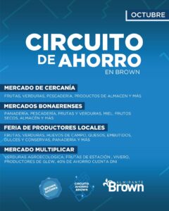 El Municipio de Almirante Brown llevará adelante durante todo el mes de octubre el programa “Circuito de Ahorro Brown”, una iniciativa que acerca diferentes propuestas de comercialización para que las vecinas y vecinos del distrito puedan adquirir productos de calidad a precios accesibles.
